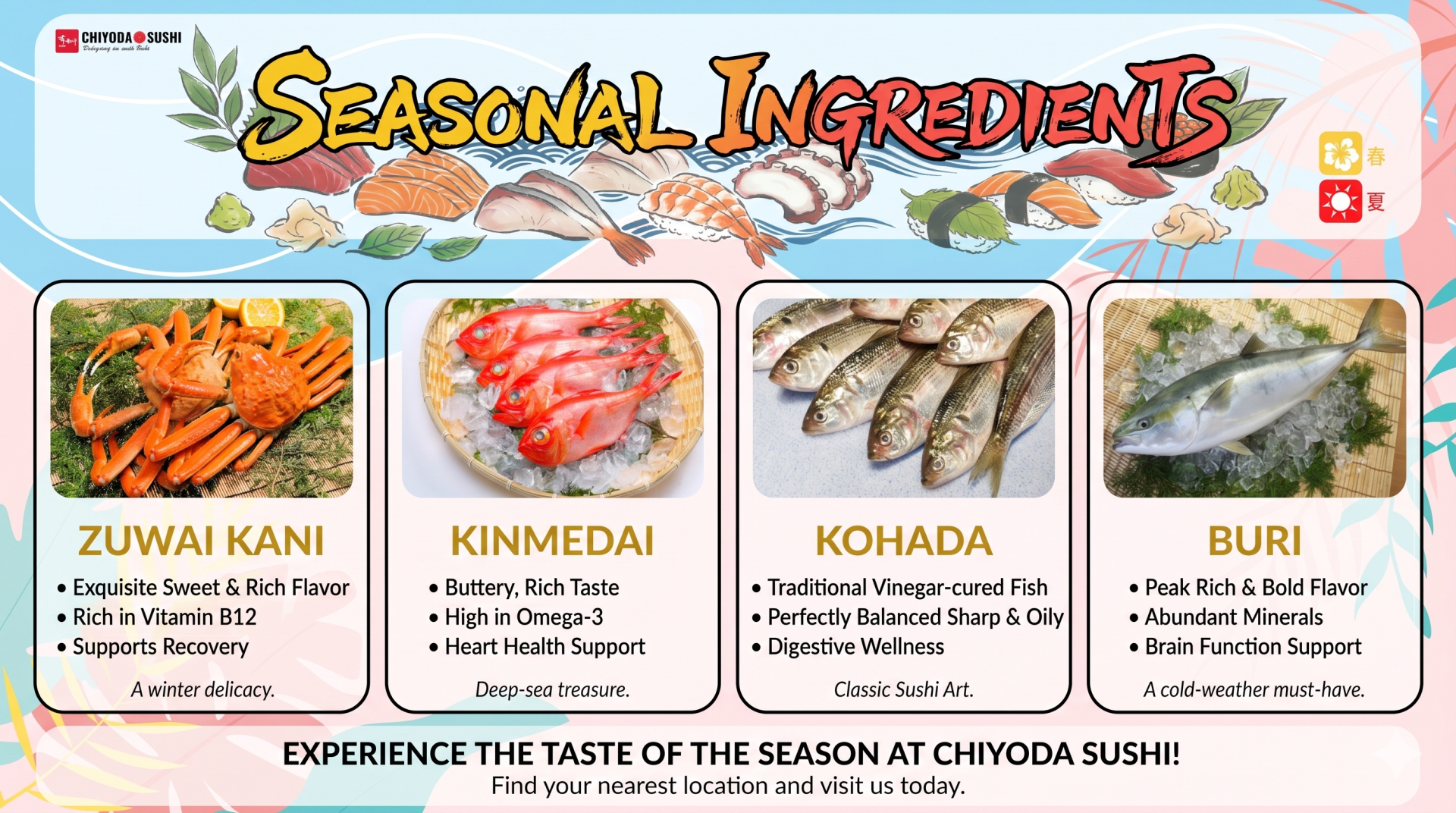 Experience the pristine essence of Japan’s deep-sea harvest. Visit Chiyoda Sushi to enjoy these seasonal ingredients at their absolute best.